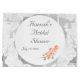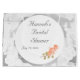 El diseño presenta una imagen de fondo de encaje blanco y delicado. El centro es blanco con texto personalizable en una fuente nupcial de color plateado. La imagen de rosas de color melocotón suave adorna la parte inferior. Perfecto para una despedida de soltera.