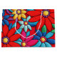 Patrón de flores de margarita abstracta de bordado en colores rojo, amarillo, azul y verde.