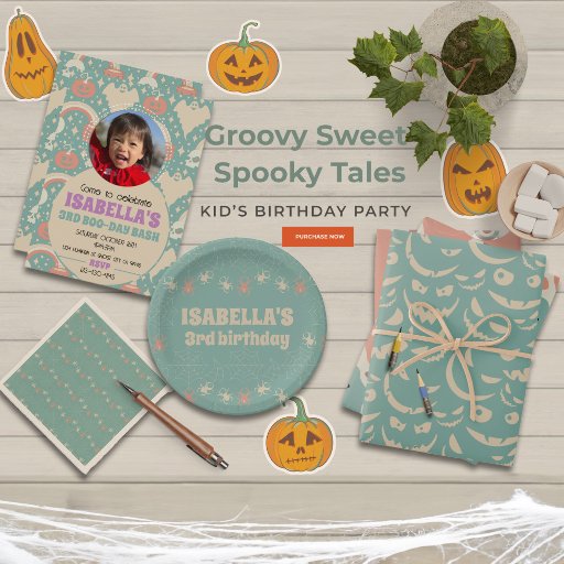 Nuestros suministros de Fiesta Sweet Spooky Tales incluyen diseños de juego pastel que combinan el encanto de los años 70 con íconos de Halloween como fantasmas amistosos, calabazas descaradas y cráneos divertidos. Desde invitaciones llamativas hasta tazas coloridas, manteles y servilletas, cada pieza se diseña para preparar la escena para una celebración de cumpleaños llena de espeluznantes momentos divertidos y divertidos.