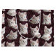 Gatitos blancos y beige lindos con los ojos azules en un modelo con un fondo púrpura con diseño del arte de los corazones rosados y púrpuras y de la imagen de impresiones de la pata. Grande para los amantes de la caloría.