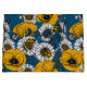 Patrón vectorial sin foco hecho con margaritas, amapolas y ladybugs dibujados a mano. Versión en color amarillo y blanco.