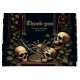 Elegancia gótica oscura. Asombroso arco apoyado por dos majestuosos pilares acabados en un acabado oscuro. Estos pilares están recubiertos de hiedra, cuyas hojas verdes contrastan con los materiales oscuros. Al pie del arco se encuentran tres cráneos humanos realistas rodeados de más hiedra. Estos elementos agregan un significado más profundo al diseño y son un recordatorio de la transitoriedad de la vida y la fuerza del amor que perdura incluso más allá de la muerte.