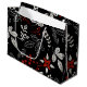Elegant botanical pattern on black background featuring white leaves, red berries, and intricate floral designs in gold accents, creating a festive, decorative feel.