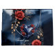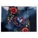 Elegante arreglo rosa con follaje dorado sobre un fondo de color azul oscuro. Un diseño elegante y decorativo con rosas rojas, hojas oscuras y acentos dorados sobre un fondo de color azul profundo y acuarela. El delicado marco dorado y la distribución equilibrada de las flores le confieren un encanto refinado y sofisticado. Perfecto para todo aquel que ame el elegante arte floral, los rosas románticos y los lujosos contrastes de color. Ideal para el arte en la pared, decoración en casa, accesorios de moda y regalos con un toque de sofisticación.
