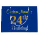 Bolsa De Regalo Grande Elegante, Azul, Faux Gold 24th Birthday + Nombre