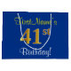 Bolsa De Regalo Grande Elegante, Azul, Faux Gold 41st Birthday + Nombre