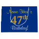 Bolsa De Regalo Grande Elegante, Azul, Faux Gold 47th Birthday + Nombre