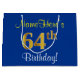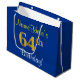 Bolsa De Regalo Grande Elegante, Azul, Faux Gold 64th Birthday + Nombre