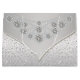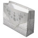 Elegante bolsa de regalo plateada con hermosos diamantes sobre un fondo elegante esparcido de diamantes plateados. Esta hermosa bolsa de regalo plateada se personaliza fácilmente con texto.