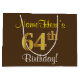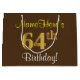 Bolsa De Regalo Grande Elegante, Brown, Faux Gold 64th Birthday + Nombre