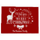 Tipografía única y elegante "Wish A MERRY CHRISTMAS" con ciervo, arco, copos de nieve y adornos, sobre un fondo rojo. herramienta personalizar para agregar su nombre. Para obtener más información, visite la colección de citas de Navidades.