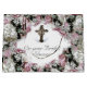La imagen de diseño presenta un arreglo floral elegante de rosas pálidas y hortensias blancas alrededor de toda la bolsa. La parte delantera y trasera del diseño dejan una abertura en medio de las flores para su texto mostrado en una tipografía Nupcial de color plateado. La parte delantera y trasera presenta la imagen de un Crucifijo plateado, que se ajusta al elemento católico. Diseñado para coordinar con la "Colección de Despedida de Soltera Católica Elegante".
