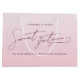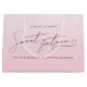 Esta adorable bolsa de regalo es ideal para dar obsequios a la cumpleañera en su fiesta de cumpleaños de dulces dieciséis. Cuenta con un fondo degradado de color rosa y blanco. Una fuente de letra femenina te dice que es un dulce dieciséis, y puedes editar el texto para el nombre de la cumpleañera. También puedes reemplazar el fondo con tu propia foto. Estilizado para ser minimalista y elegante, con florituras elegantes. Explora mi colección para encontrar papelería y decoración a juego. ••• Para más conjuntos de cumpleaños femeninos, visita mi tienda Zazzle.com/EventsByJessicaAmber ••• Para pedidos personalizados, envíame un mensaje en Zazzle