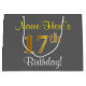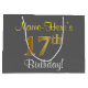 Bolsa De Regalo Grande Elegante, gris, falso oro 17 cumpleaños + nombre