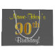 Bolsa De Regalo Grande Elegante, gris, falso oro 90 cumpleaños + nombre
