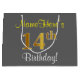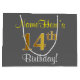 Bolsa De Regalo Grande Elegante, Gris, Faux Gold 14th Birthday + Nombre