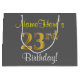 Bolsa De Regalo Grande Elegante, Gris, Faux Gold 23 cumpleaños + nombre