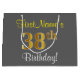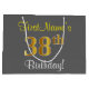 Bolsa De Regalo Grande Elegante, Gris, Faux Gold 38th Birthday + Nombre
