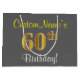 Bolsa De Regalo Grande Elegante, Gris, Faux Gold 60 cumpleaños + nombre