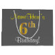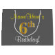 Bolsa De Regalo Grande Elegante, Gris, Faux Gold 6cumpleaños; nombre pers