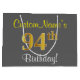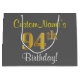 Bolsa De Regalo Grande Elegante, Gris, Faux Gold 94th Birthday + Nombre