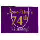 Bolsa De Regalo Grande Elegante, morado, oro falso 74 cumpleaños + nombre