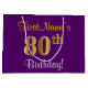 Bolsa De Regalo Grande Elegante, morado, oro falso 80 cumpleaños + nombre