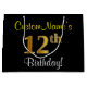 Bolsa De Regalo Grande Elegante, negro, falso oro 12 cumpleaños + nombre