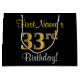 Bolsa De Regalo Grande Elegante, negro, falso oro 33 cumpleaños + nombre