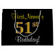 Bolsa De Regalo Grande Elegante, negro, falso oro 51 cumpleaños + nombre
