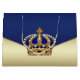 Bolsa de regalo para baby shower de príncipe con hermoso azul real y corona de golf en un fondo elegante azul real y dorado. Esta bolsa de regalo de príncipe o rey se personaliza fácilmente para su evento agregando texto. También puede mover y cambiar el tamaño de la corona según sea necesario.