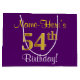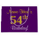Bolsa De Regalo Grande Elegante, púrpura, Faux Gold 54th Birthday + Nombr