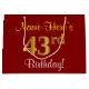 Bolsa De Regalo Grande Elegante, rojo, falso oro 43 cumpleaños; nombre pe