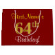 Bolsa De Regalo Grande Elegante, rojo, falso oro 64 cumpleaños; nombre pe
