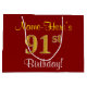 Bolsa De Regalo Grande Elegante, rojo, falso oro 91º cumpleaños; nombre p