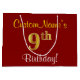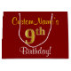 Bolsa De Regalo Grande Elegante, rojo, falso oro 9 cumpleaños + nombre pe