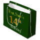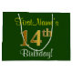 Bolsa De Regalo Grande Elegante, verde, falso oro 14 cumpleaños + nombre