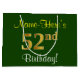 Bolsa De Regalo Grande Elegante, verde, falso oro 52 cumpleaños + nombre