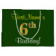 Bolsa De Regalo Grande Elegante, verde, falso oro 6º cumpleaños + nombre