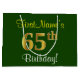Bolsa De Regalo Grande Elegante, verde, falso oro 65 cumpleaños + nombre