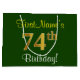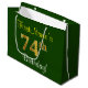 Bolsa De Regalo Grande Elegante, verde, falso oro 74 cumpleaños + nombre