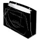 Un diseño elegante y moderno eleva el nombre o el nombre de la empresa a través de un estilo minimalista y refinado. Los marcos plateados se basan en un fondo negro para dar un toque de lujo a este clásico y abstracto diseño de bolsos de venta de papel. También hay disponibles tarjetas de visita coincidentes.