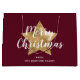 Elegante Burgundy Red Gold Star Navidades Gran Bolsa de Regalos.