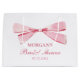 Celebra la futura novia con la bolsa grande de regalo "She's Tying The Knot" (Ella está atando el nudo). Este bonito bolso presenta un delicado diseño de arco rosado que le da un toque elegante a cualquier ducha de novia. Perfecto para llevar pequeños regalos, dulces o favores de fiesta, esta bolsa es a la vez elegante y práctica. Su suave color rosa oscuro y su encantador diseño lo convierten en un bonito lugar de descanso para los clientes. Personalízalo con el nombre de la novia por un toque especial y reflexivo.
