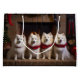 Una escena encantadora capta la esencia de la comodidad y el espíritu de las vacaciones mientras los compañeros peludos adornados en gorras de Santa Claus se reúnen alrededor de una chimenea chocante. La calidez de la chimenea crea un ambiente acogedor para estos adorables caninos, mientras que las medias festivas cuelgan al fondo, lo que crea un ambiente alegre. El encantador ilustracion retrata una imagen atemporal de la compañía y la alegría festiva, perfecta para celebrar la temporada navideña con un toque de encanto canino.