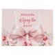 Fondo rosa claro decorado con un lazo de color rosa y rosas, flores. Personalice y agregue un nombre