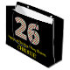 Este sencillo y divertido diseño de bolsas de regalo de cumpleaños con temática de Navidades y cumpleaños el 25 de diciembre presenta un gran número "26" con un patrón de franjas rojas, blancas y verdes, junto con el mensaje "Feliz cumpleaños 26 y Feliz Navidad", y un nombre personalizado. El fondo es negro de color. Una bolsa de regalo como esta podría ser usada para envolver regalos o regalos que se le están dando a alguien que nació el Día del Navidad (25 de diciembre) y que está celebrando su vigésimo sexto cumpleaños. [~Z0000407]