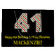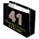 Este divertido y sencillo diseño de bolsos de regalo de cumpleaños con temática de Navidades y cumpleaños, tiene un gran número "41", con un patrón de rayas verdes, blancas y rojas. También incluye el mensaje "Feliz 41 cumpleaños y Feliz Navidad", y un nombre editable. El fondo es negro de color. Una bolsa de regalo como esta podría ser una manera divertida de envolver regalos que se le están dando a alguien que nació el 25 de diciembre (Día del Navidad) y que está celebrando su cuarenta y primer cumpleaños. [~Z0000407]