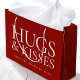 Las bolsas de regalo personalizadas añaden un toque reflexivo y lujoso a cualquier regalo. Este diseño elegante presenta "Abrazos y Besos" en tipografía clásica, y se puede personalizar con el nombre del destinatario y un mensaje de "Feliz Cumpleaños" — perfecto para cumpleaños importantes como los 18, 21, 30, 40, 50 y 60 años. Esta plantilla elegante se puede adaptar para el Día de San Valentín, una despedida de soltera, fiesta de soltera, vacaciones y otras ocasiones especiales. Una adición única a su envoltorio de regalo, y una excelente opción para una novia, novio, esposo, esposa, hija o mejor amigo. Disponible en acabado mate o brillante. Colores impresos: rojo burdeos oscuro y blanco, o personalice los colores con la herramienta de diseño.