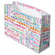 ¡Esta bolsa de regalo festiva y divertida hará el cumpleaños de cualquiera! La frase española "¡Feliz cumpleaños!" está en muchos tipos de letra y colores brillantes, algunos incluso a los lados!, formando una nube de palabras. Perfecto para hablantes de español, estudiantes, profesores... o cualquier persona!